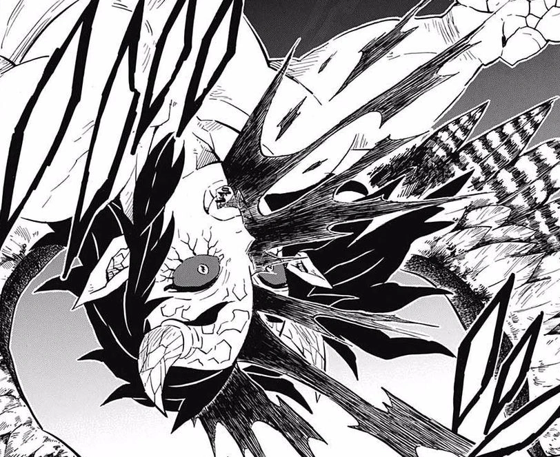 In the forest near the edge of the village, Tanjiro dodges an attack from Urogi by slicing his head, splitting him into two more Demons. The pair of Demons generate more sonic screams and direct them at Tanjiro, but the Demon Slayer is able to withstand them and observes that Hantengu is most powerful at four separate Demons that represent the four primary emotions; any more splitting would decrease their attack strength. With this information, Tanjiro continues to attack Urogi and is slashed across the chest with the Demon's sharp claws, but manages to land multiple blows on his head.