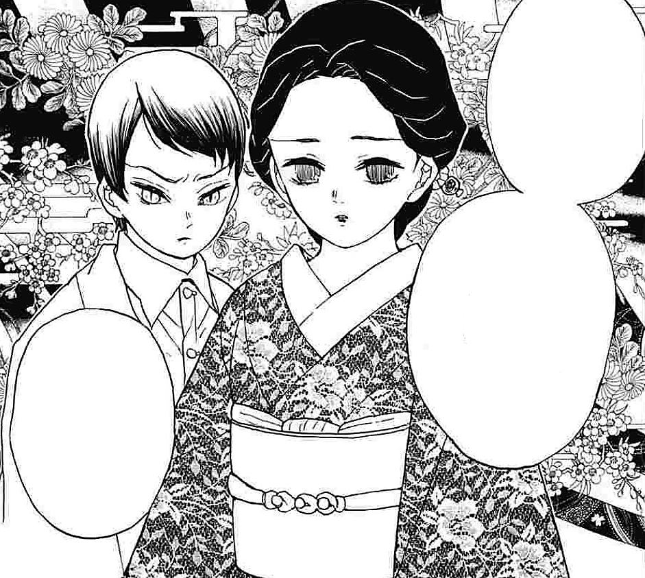 The scene momentarily flashes back to a tall, long-haired individual confronting someone laying on the ground, while also mentioning that they would not forgive that person. Their earrings, extremely similar to the one's worn by Tanjiro, trigger a response by Muzan causing him to shiver.