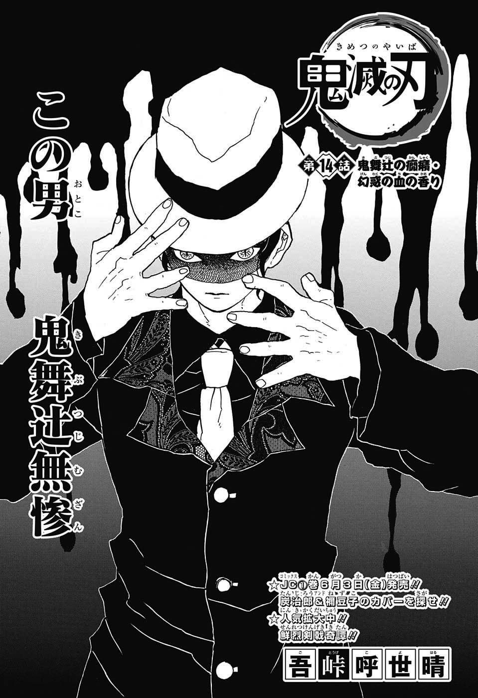 The chapter ends with two new individuals appearing before Muzan, with him instructing them to kill the "demon hunter with the hanafuda earrings" alluding to Tanjiro.