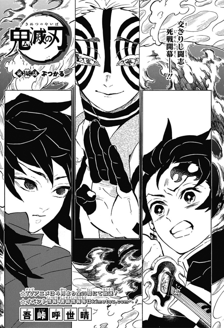 Clashing (ぶつかる Butsukaru?) is the one hundred and forty-eighth chapter of Koyoharu Gotōge's Kimetsu no Yaiba.