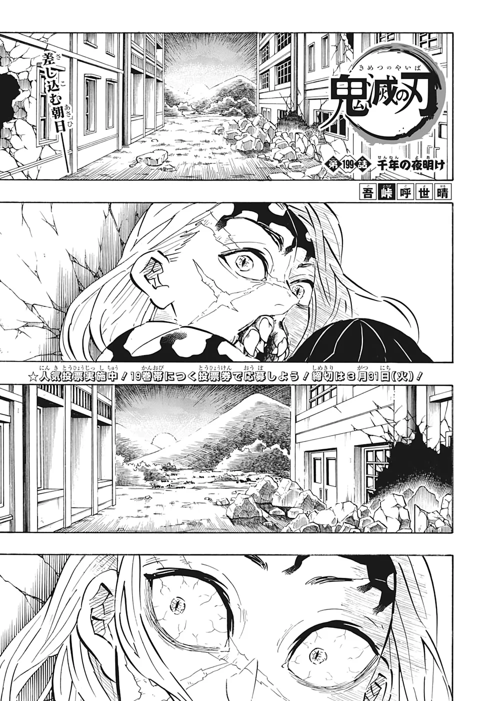 The sun begins to rise and Muzan Kibutsuji is horrified at the sight of it. He unleashes another shockwave and blows Obanai Iguro and Sanemi Shinazugawa away, however, Tanjiro Kamado holds on but loses his left arm.