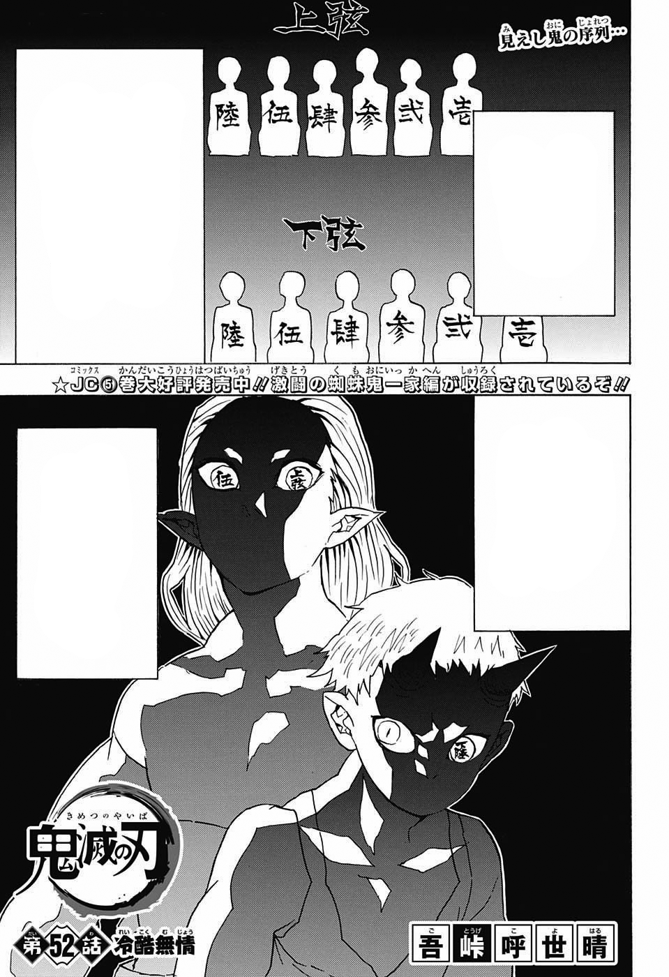 Muzan then targets Mukago and questions if she has more fear for the Demon Slayers rather than him, which she denies. However he takes offense, and accuses her of contradicting him, without giving her a chance to respond he quickly kills her as well. With only three of the Lower Ranks remaining, Lower Rank 3, Wakuraba, decides that his only chance of surviving death is to escape so he makes a run for it. Before he can reach the exit, he is seemingly decapitated by Muzan who finally reveals his intentions of dismantling the Lower Ranks.
