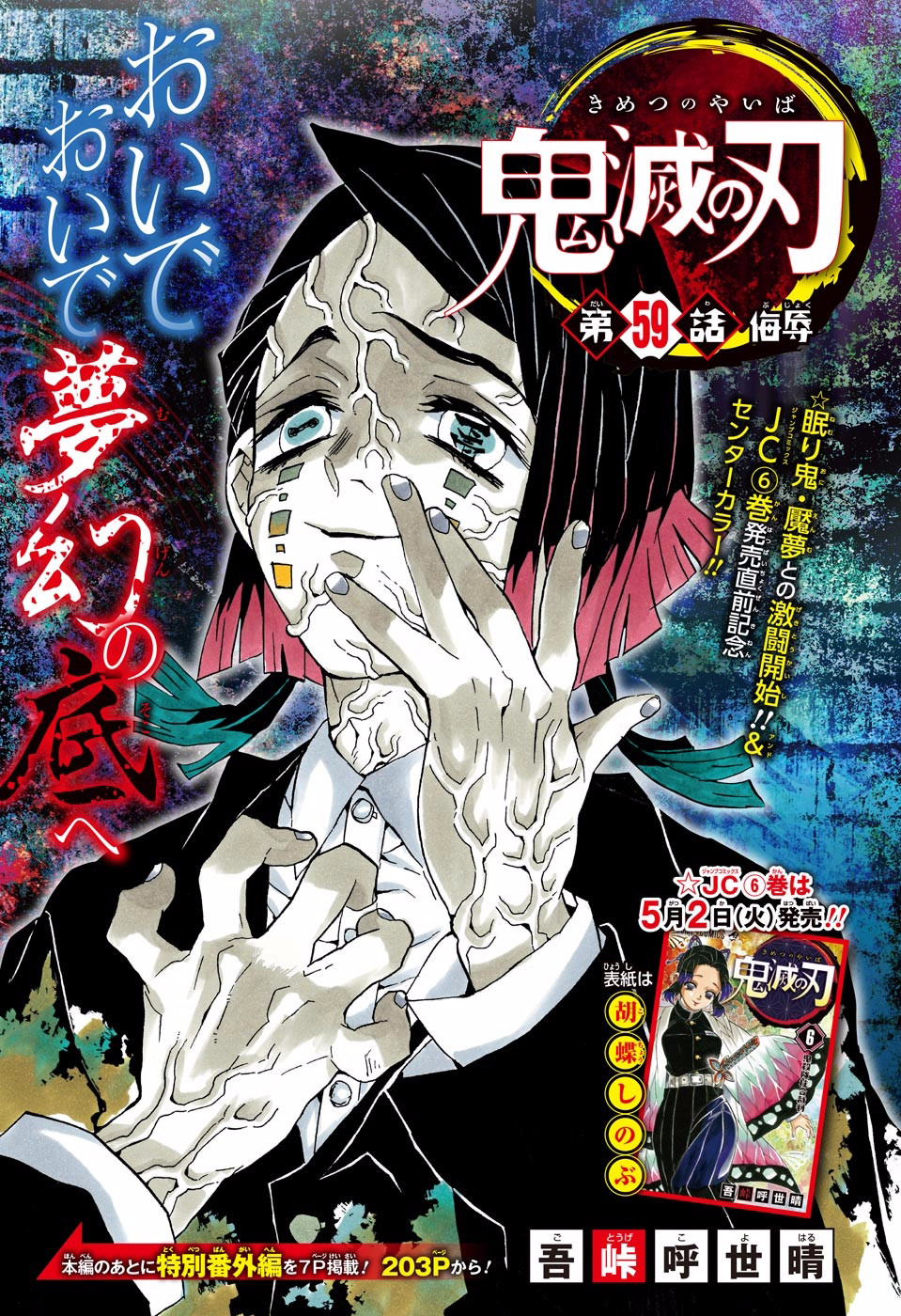 Enmu thinks to himself how he loves showing people nightmares after giving them pleasant dreams because he likes seeing them groan and writhe in pain. He resolves not to let his guard down so he can successfully destroy the demon slayers.