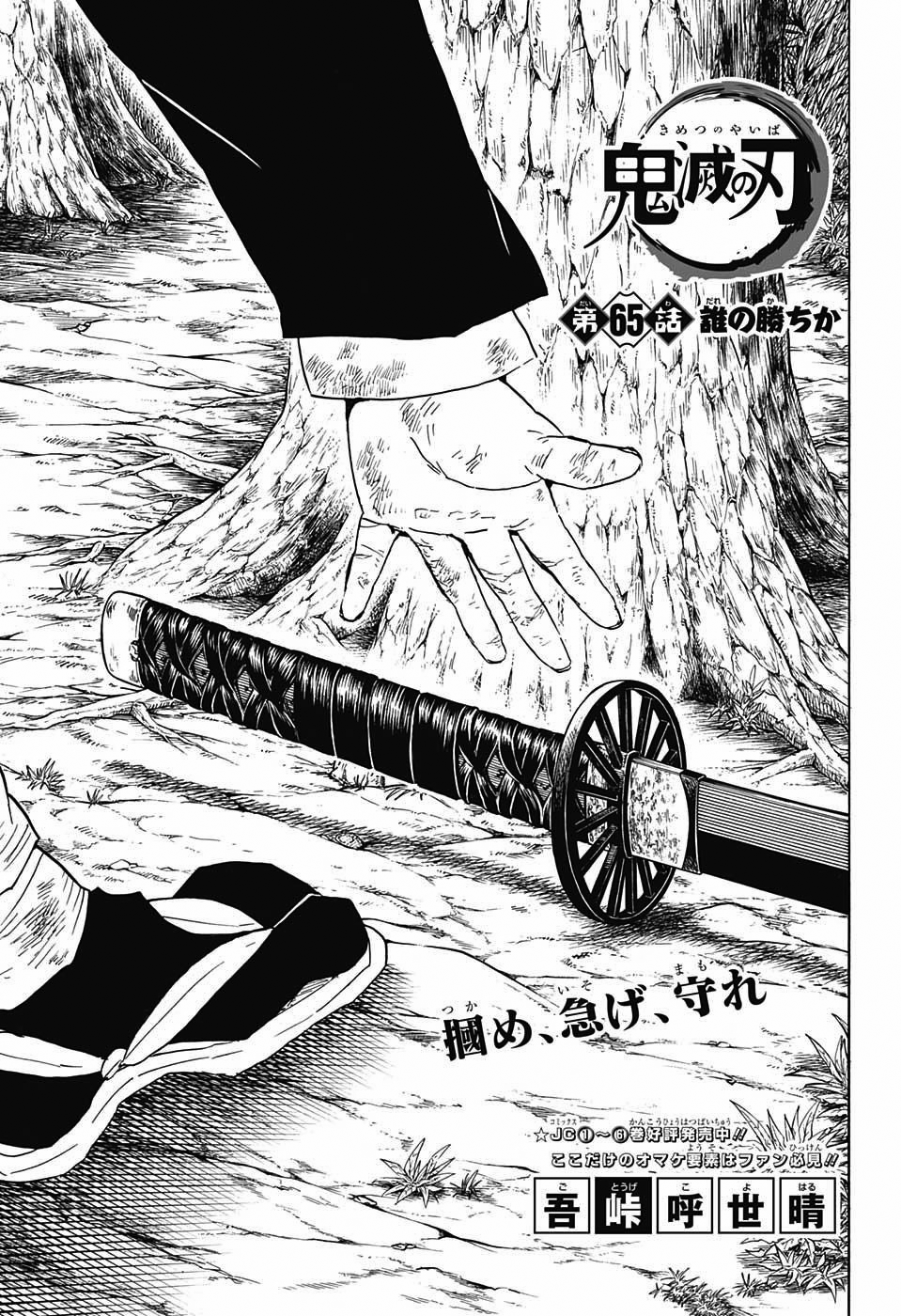 As Inosuke prepares to utilize Beast Breathing First Fang: Pierce, the Upper Rank manages to escape at the last moment, sacrificing both of his arms, with Kyojuro's blade still stuck in his neck. He tries to flee into the nearby forest to escape the coming sunlight, but Tanjiro hurls his sword at the Demon, impaling him through the chest.