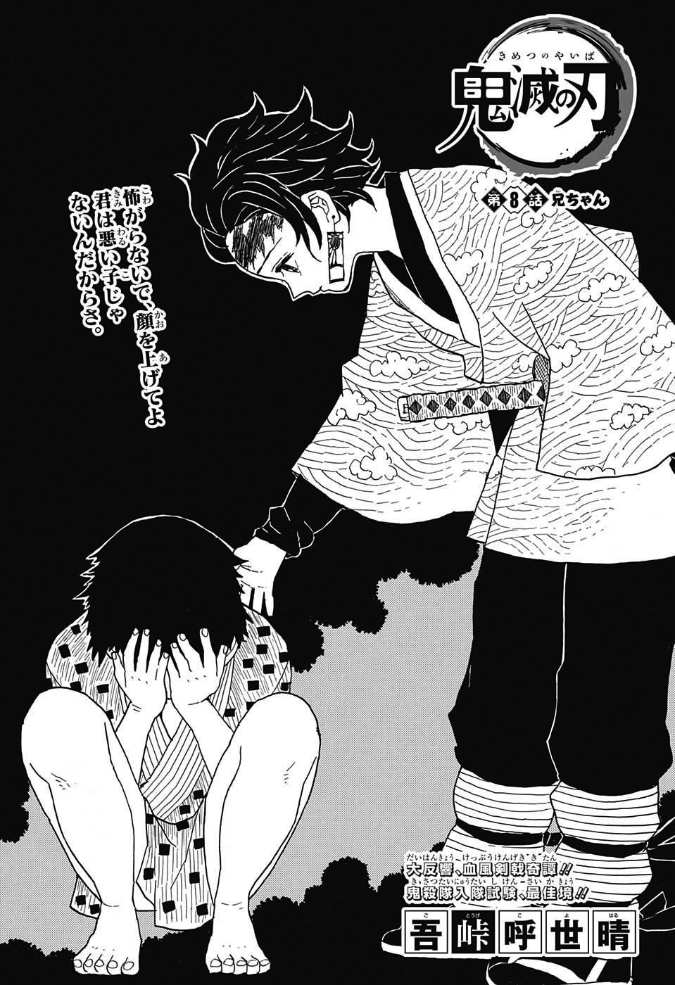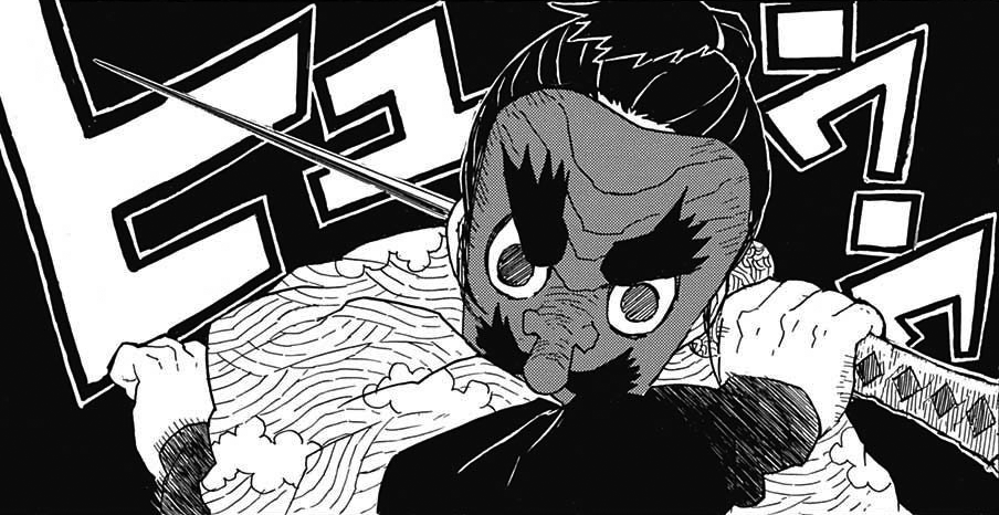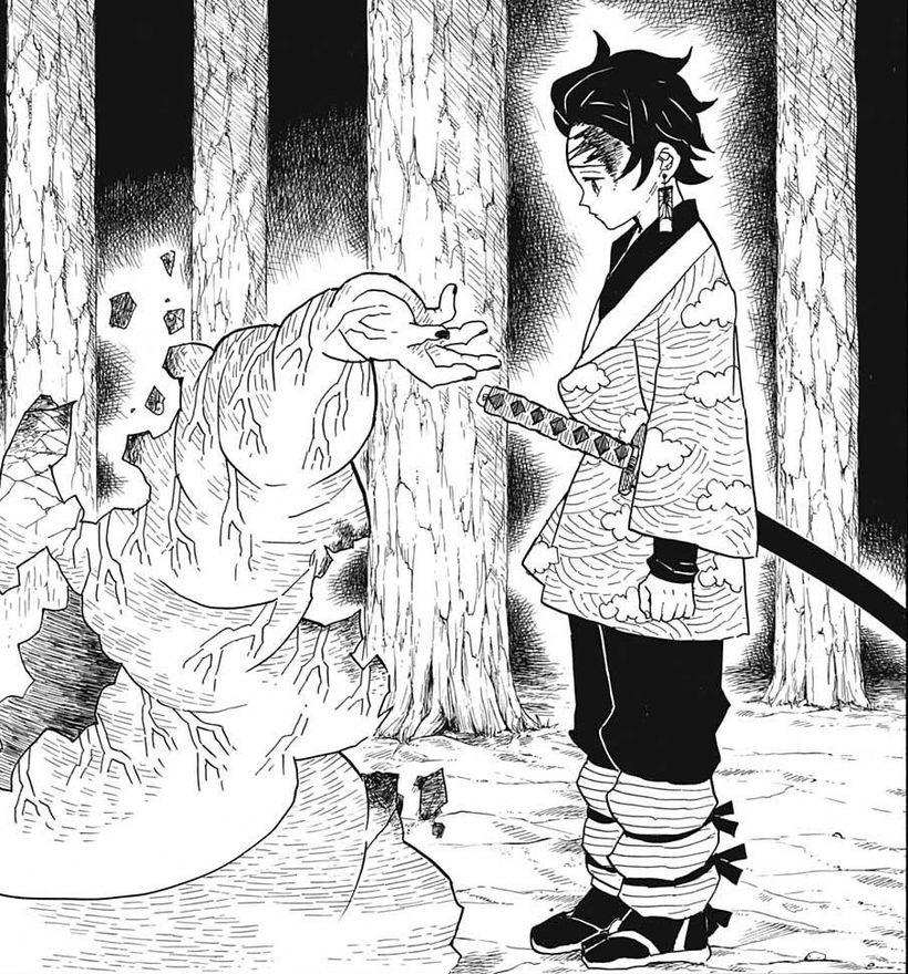 Picking up from the last chapter, Tanjiro leaps up into the air and begins his assault on the Hand demon. Right before he is able to swing his katana, the demon has a sense of nostalgia at the familiarity of this scene and even believes that he is fighting Urokodaki.