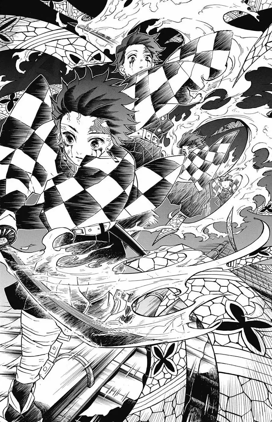 Daki glares down at Tanjiro and berates him for his weakness as a human, she mocks his injuries and slowly approaches him to deliver the final blow. Before she can deliver the attack, a leg comes down and kicks Daki hard behind rupturing her head. Nezuko can be seen boiling with rage as she stands between Tanjiro, whos struggling to breathe on the ground, and Daki. Nezuko recalls the memories of when her family was slaughtered on that snowy night and her rage grows stronger, as she prepares to fight the Upper Rank Demon. Daki's head and face begins to regenerate as she glares holes into Nezuko, she recognizes her as the Demon Muzan Kibutsuji had told her about. Nezuko's face begins to transform as her infinite anger begins to push her forward, leaving the reader wondering what would happen in Nezuko's case, begin a Demon with no physical limitations.