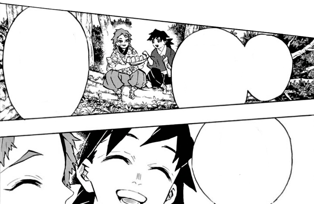 Tanjiro wakes up a few moments later and Giyu explains to him that he and Sanemi were just training, not fighting, as Hashira also attend each others’ training sessions. After this clarification, Giyu and Tanjiro think of ideas to befriend Sanemi.[23]