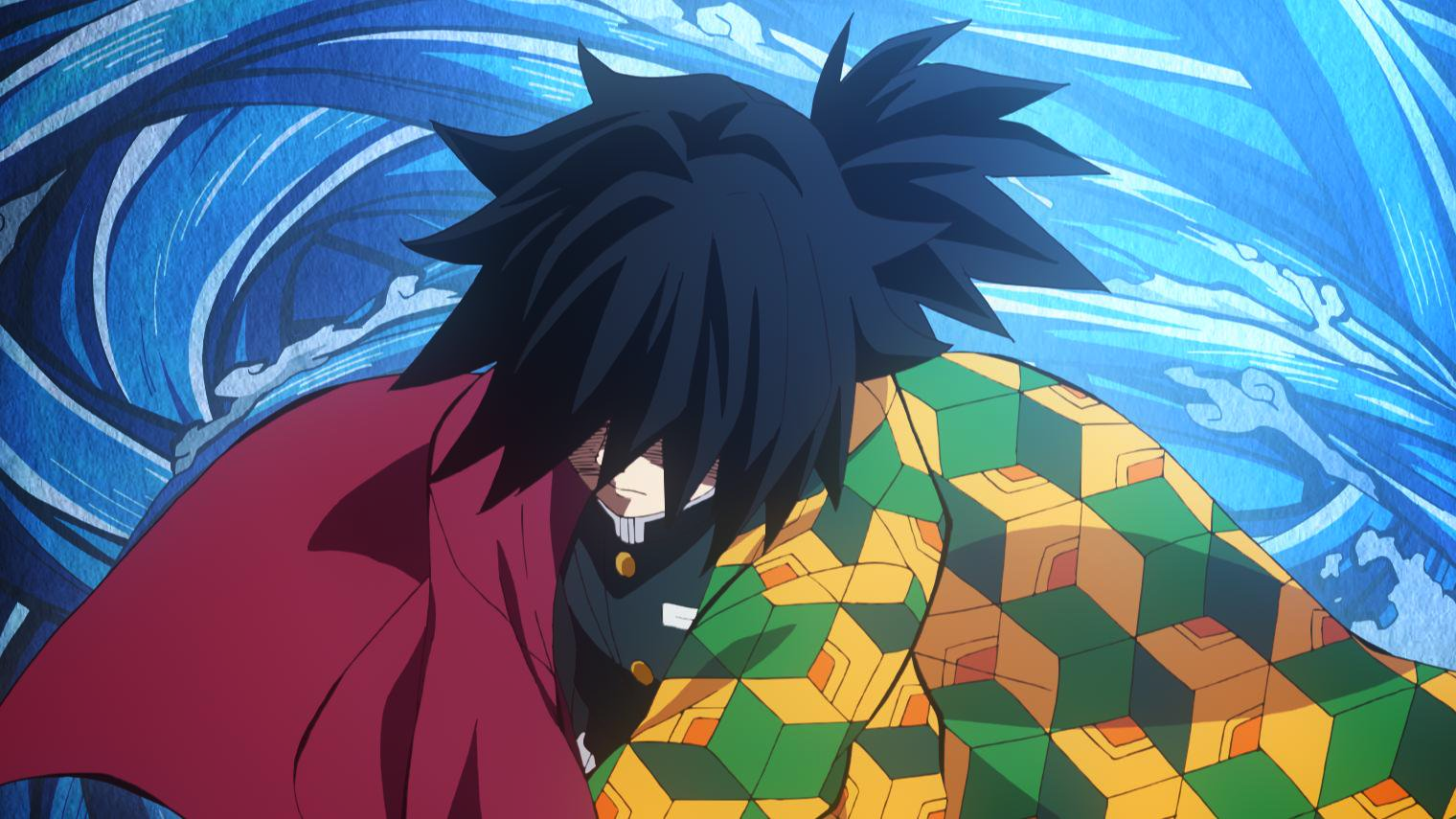 After Akaza's beheaded body begins attacking Tanjiro, the injured Giyu defends Tanjiro, vowing to protect Tanjiro with his life even as he continues to take damage. After Akaza's death, Giyu falls unconscious from fatigue alongside Tanjiro.