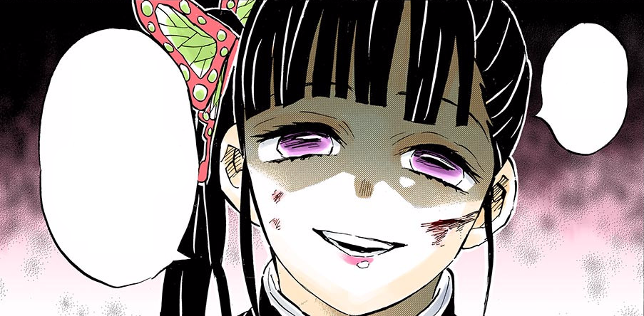 Kanao gradually becomes able to express her emotions and wants more openly, as seen when Tanjiro recovers from his injuries and she displays relief,[9] when she tells Shinobu that she wishes to train alongside her, and when she expresses shock and distress at Shinobu's plan to defeat Doma.[10]