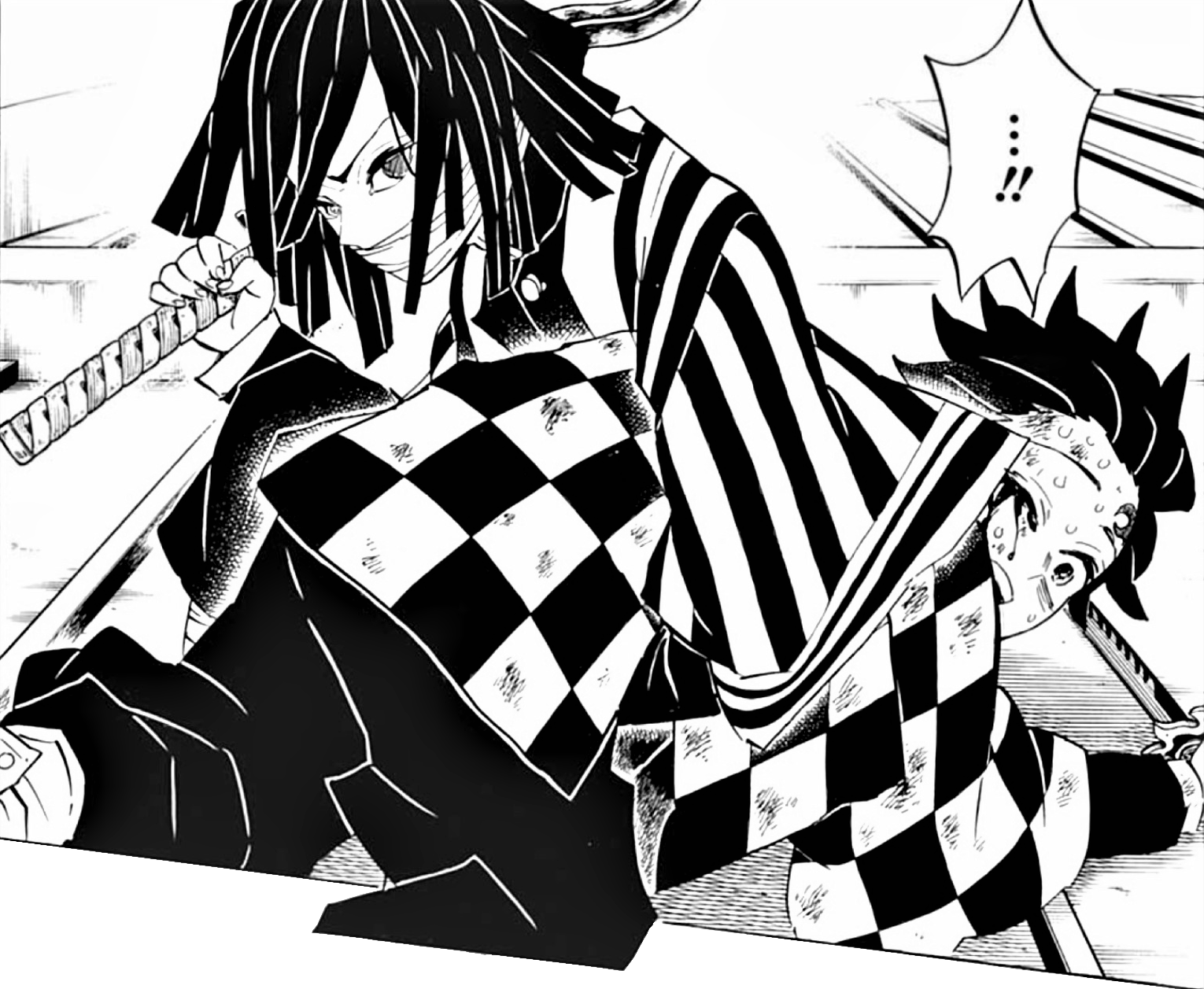Obanai also hated Tanjiro with a passion, even more than he hated Giyu. It started with Tanjiro's breach of Demon Slayer conduct and insubordination during the Hashira meeting, but intensified after Tanjiro interacted with Mitsuri during the Swordsmith Village attack and completed her Hashira Training with raving reviews. As the story goes on, Obanai shows something of warmth towards Tanjiro. An example is when Tanjiro gets slashed in the eye by Muzan, and Obanai jumps in to protect him. They also work together to fight against Muzan when Obanai loses his eyesight due to an injury, Tanjiro gives Kaburamaru one of Yushiro's seals that allows Obanai to see what his snake sees, aiding in the battle.