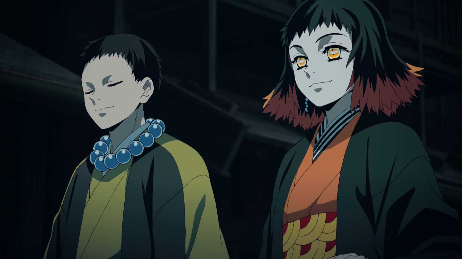 Yahaba finds that the Demon Slayer is being accompanied by others. Excited to slaughter them all, Susamaru asks how they should go about destroying them. Yahaba replies that of course, they must execute them vindictively for Lord Kibutsuji, much to Susamaru's liking. Susamaru follows her partner to an invisible house hidden behind a fake wall.