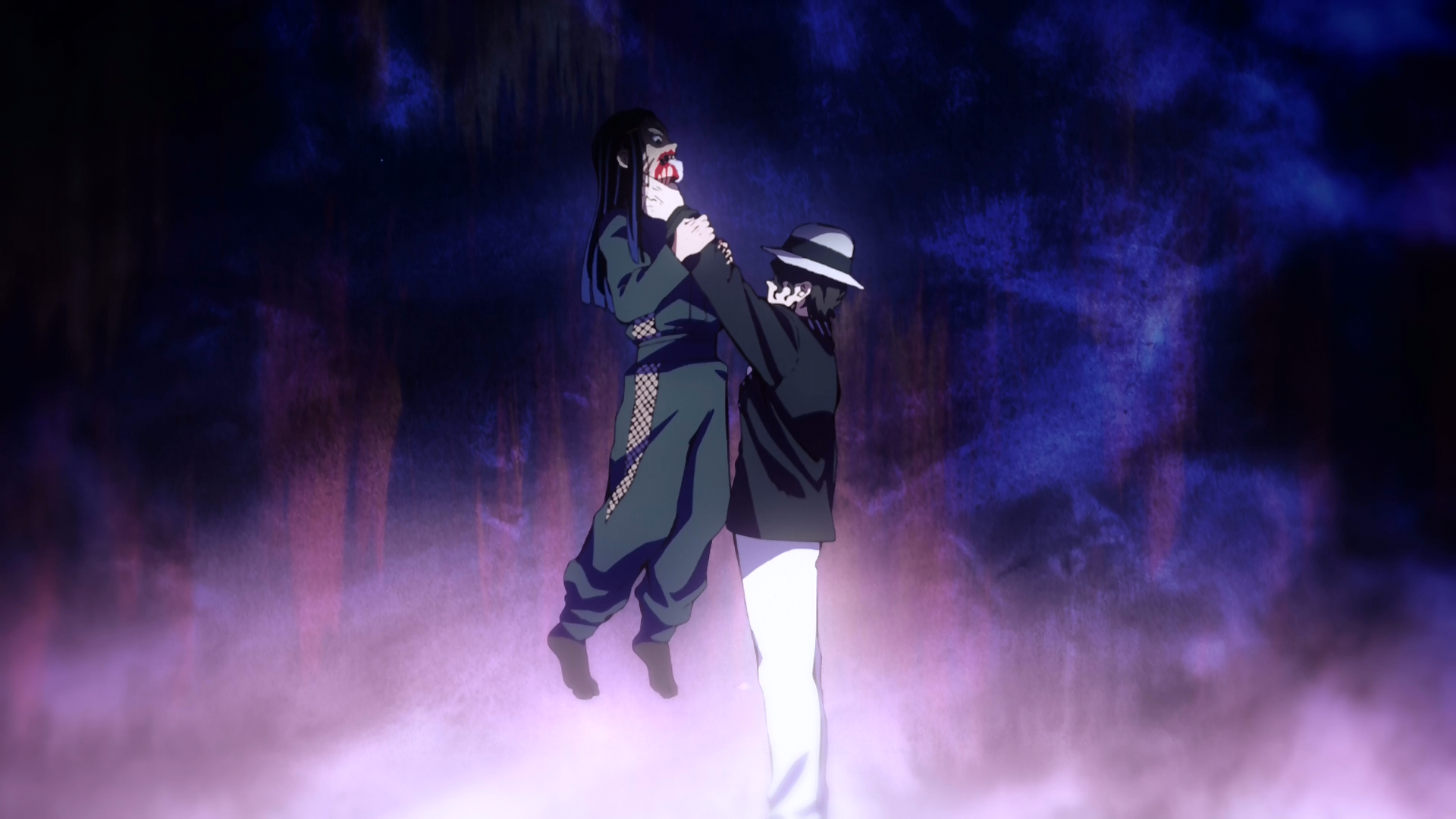 A swamp portal opens beneath them as a distraction while the two-horned Demon goes after the girls. Nezuko protects Kazumi and keeps the Demon back. Tanjiro asks Nezuko to continue protecting Kazumi while the young Demon Slayer heads underground. He descends into the Demon's bog dimension, where there is hardly any air and the clothes of many victims float about.[14]