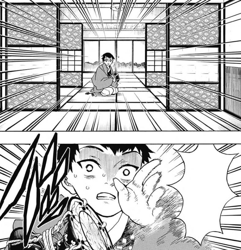 At first, Tanjiro struggles due to the injuries he sustained in Asakusa. After regaining his spirit, Tanjiro is able to adapt to the changes by changing the form of his own water techniques. He sees fit not to trample on Kyogai's writing and even compliments his Blood Demon Art before severing his head. Kyogai dies in peace knowing his talents were acknowledged by someone.