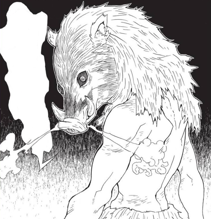 Tanjiro and Zenitsu head into the house but are separately shortly after, tasked with protecting one of the children each. Zenitsu accidentally discovers another young demon slayer who wears a boar hide as a mask. The wild boar Inosuke charges through the house trying to slay the same demon as the others.